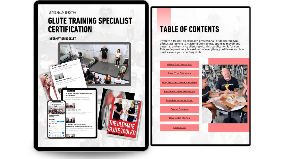 The 50 learning modules, Glute Encyclopedia, and Ultimate Glute Toolkit included in the certification.